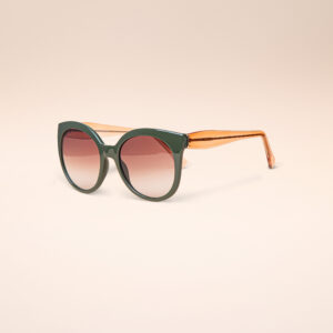 Armação redonda e olhos de gato nas extremidades frontais.