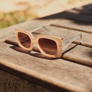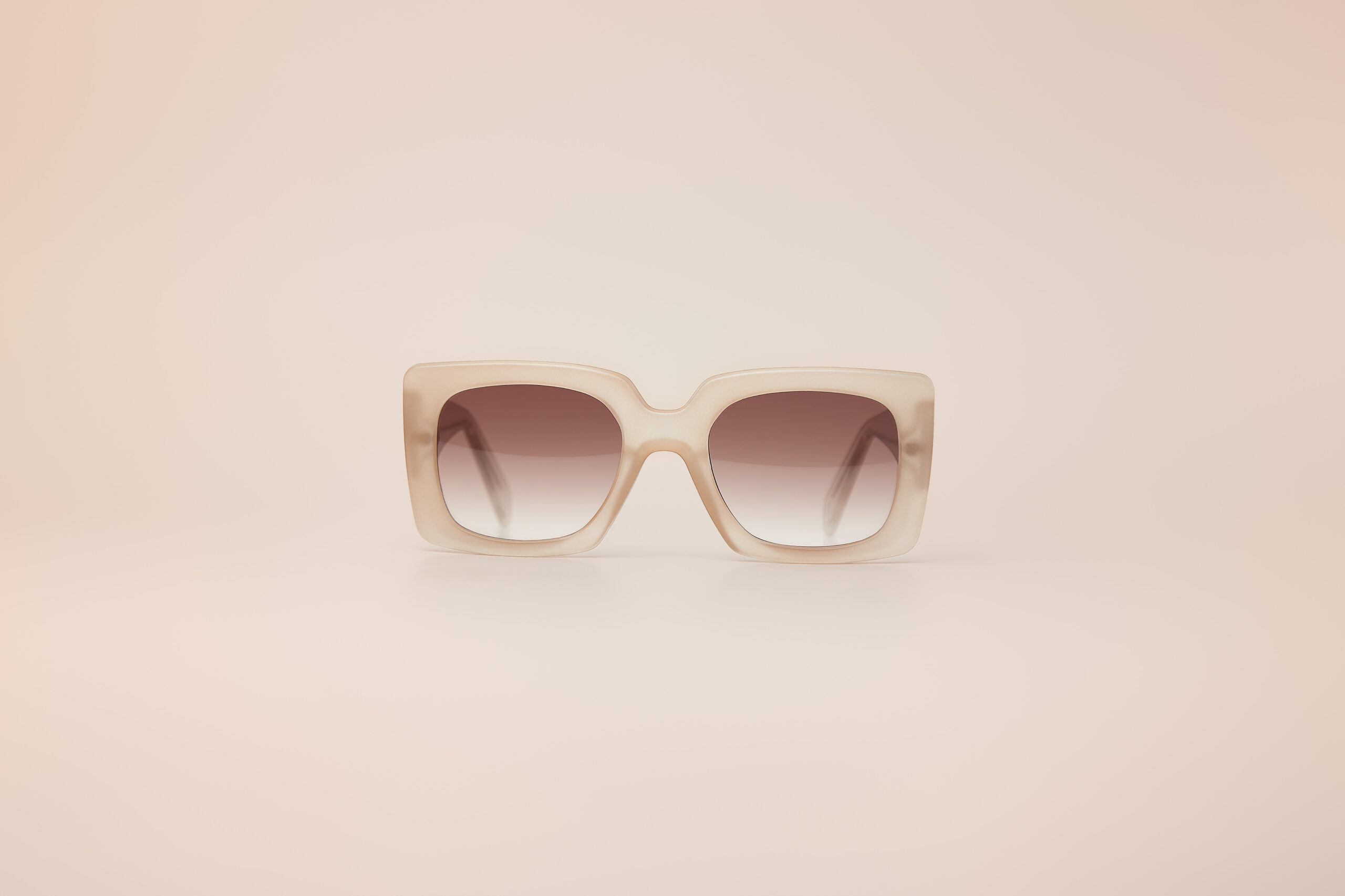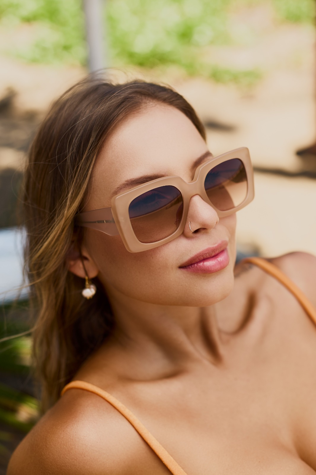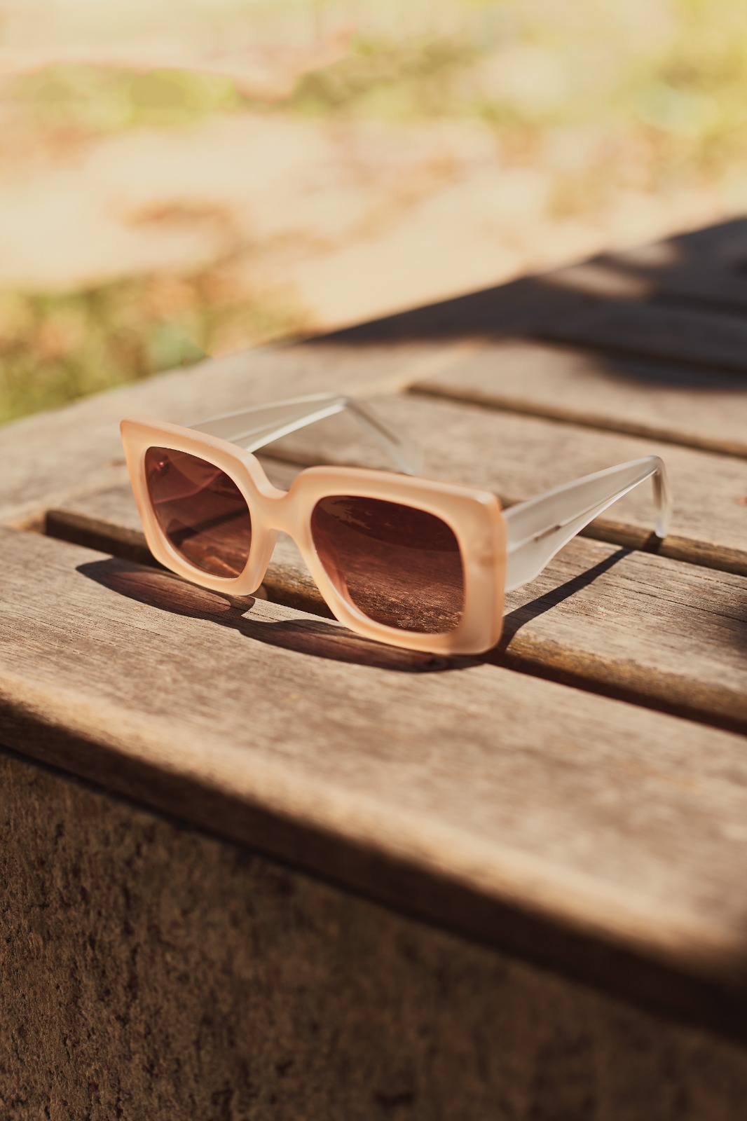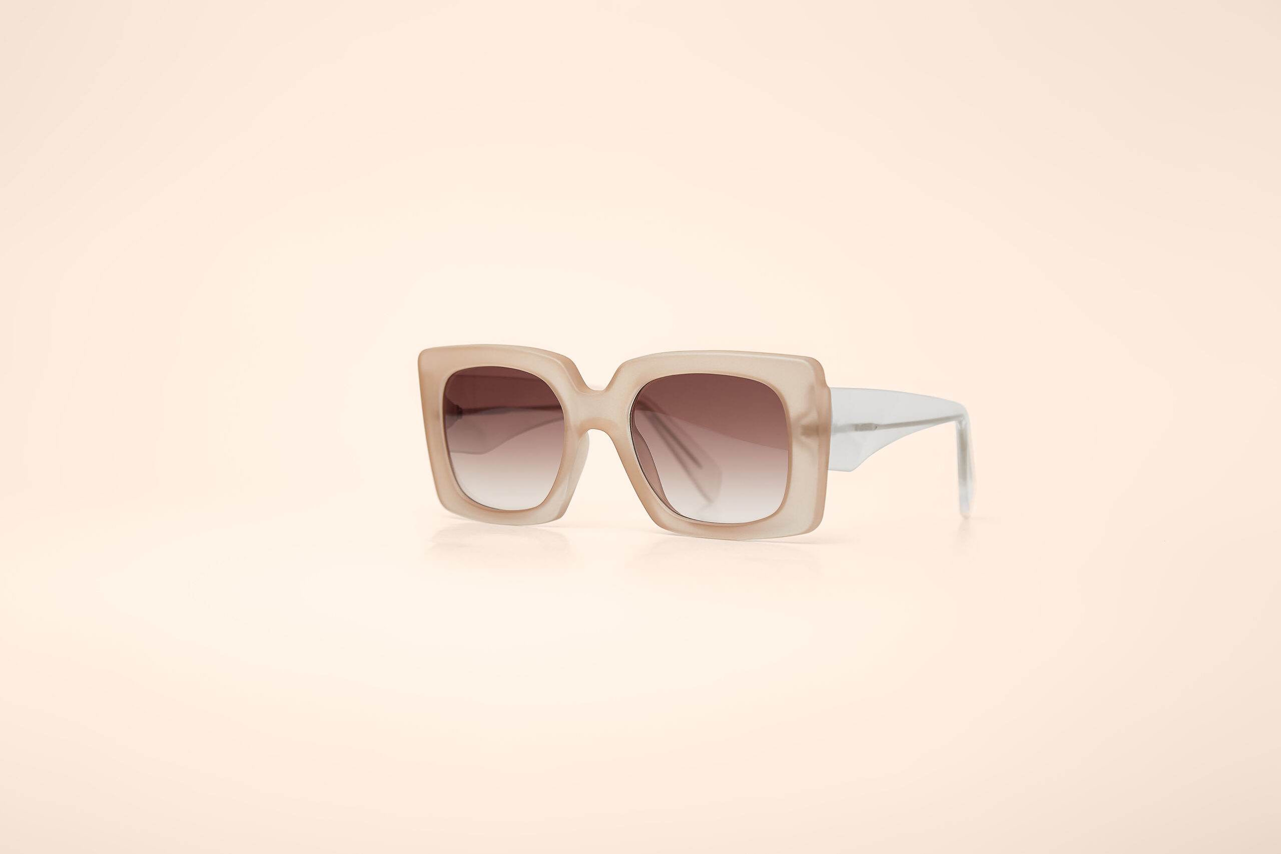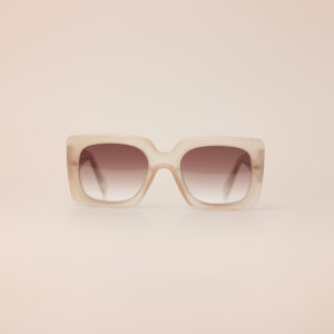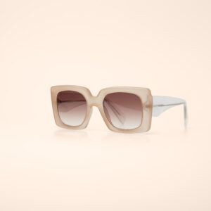 Armação: Bege fosco, haste transparente;