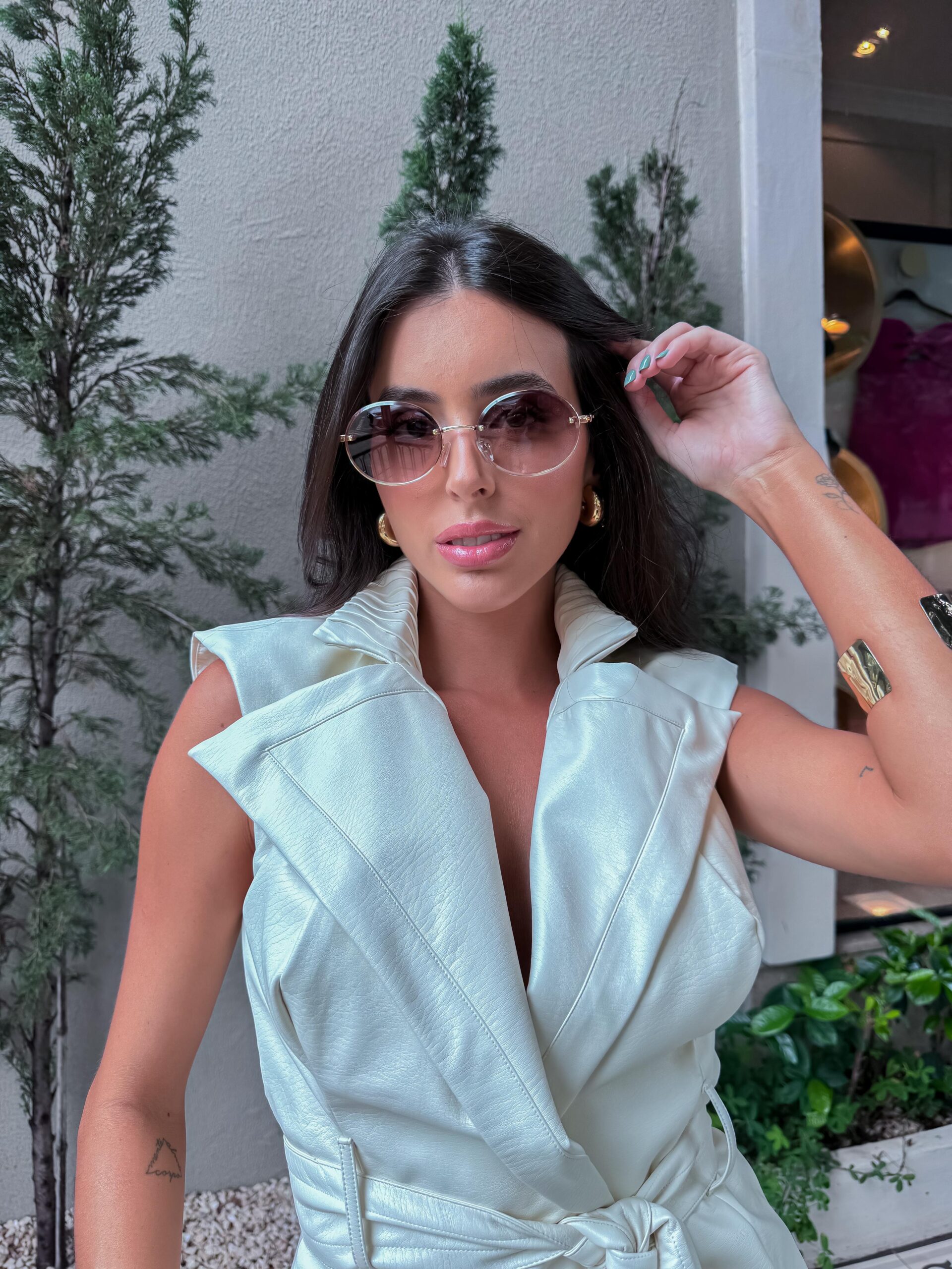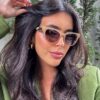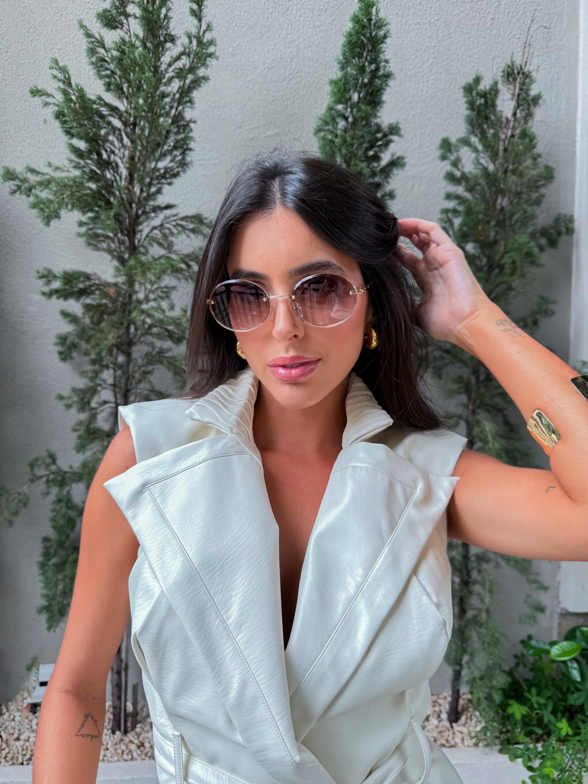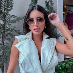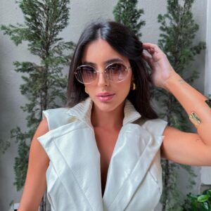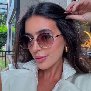 Armação dourada e lentes marrom degradê.