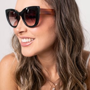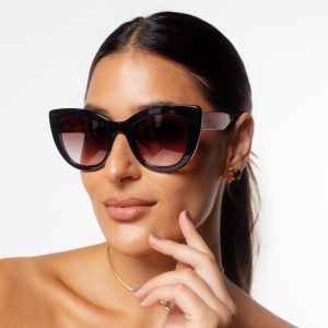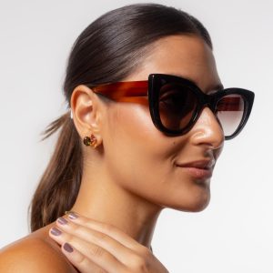 Armação: preto, hastes tartaruga, detalhes ponta branco;